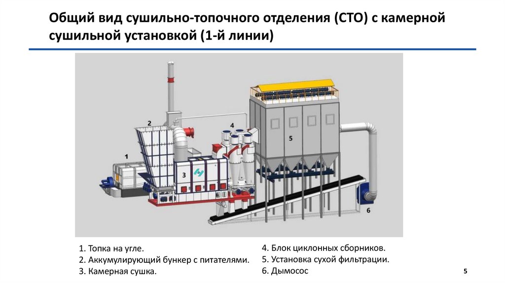 Общий вид сушильно-топочного отделения (СТО) с камернойсушильной установкой (1-й линии)