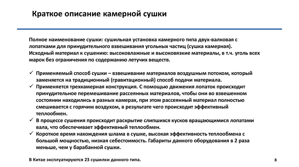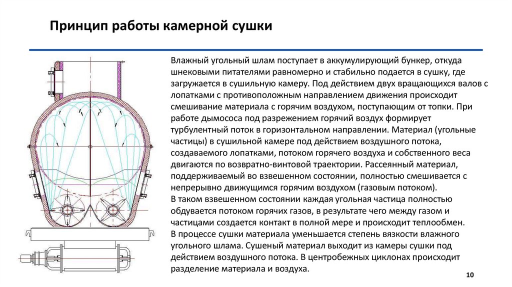 Принцип работы камерной сушкиВлажный угольный шлам поступает в аккумулирующий бункер, откуда