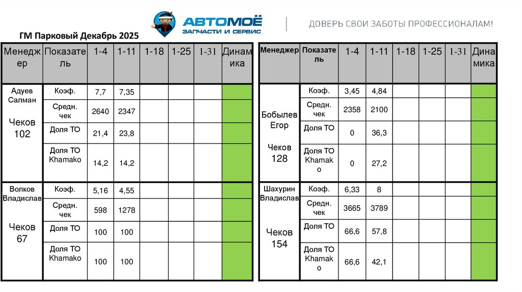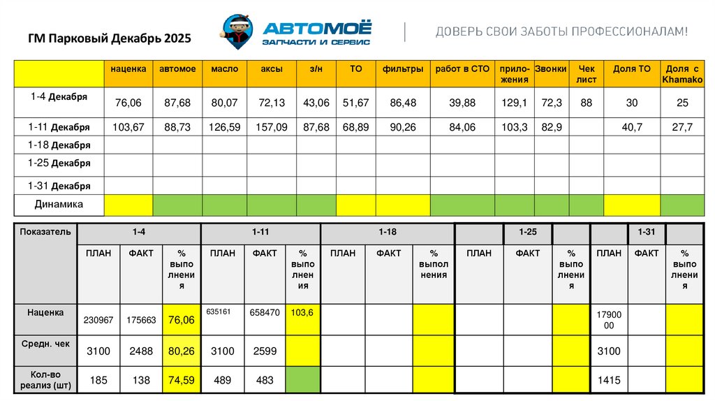 ГМ Парковый Декабрь 2025Менедж Показате 1-4 1-11 1-18 1-25 1-31 Динам