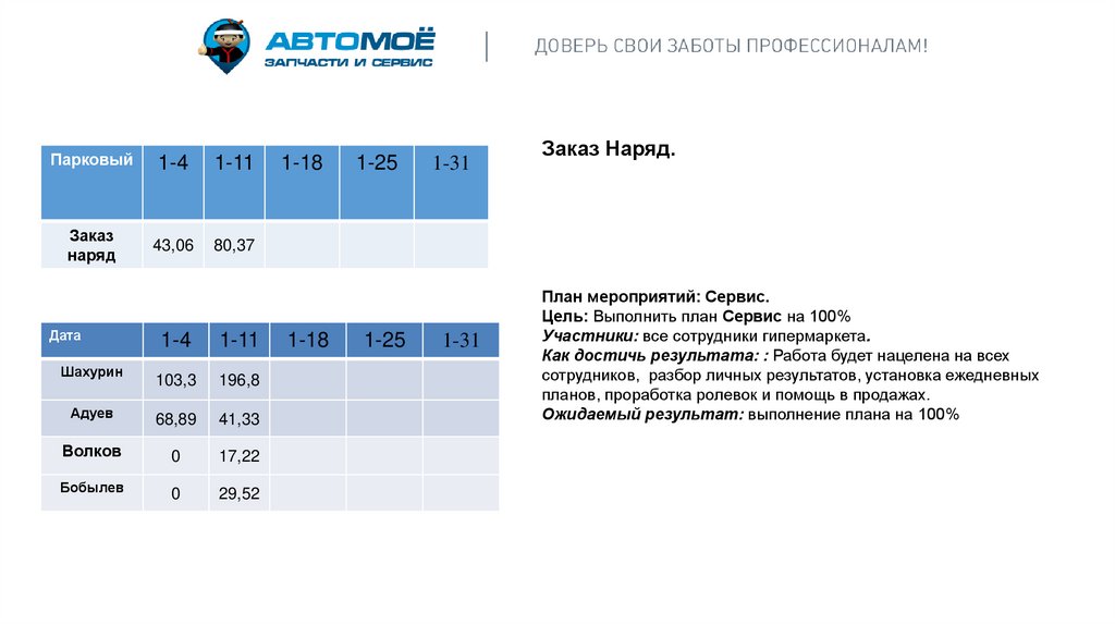 гипермаркета разбор личных результатов, установка ежедневных планов и