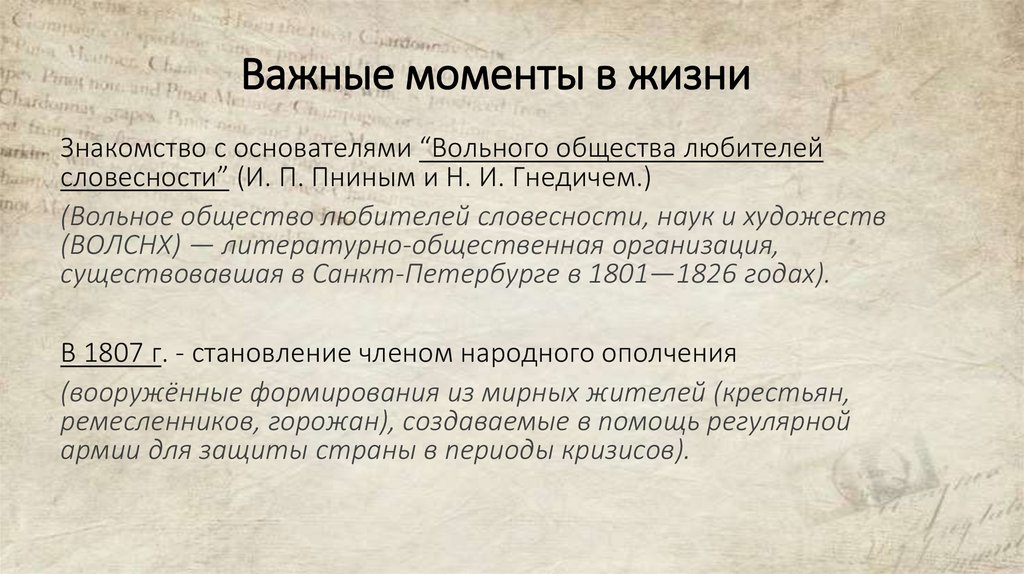 Важные моменты в жизниЗнакомство с основателями “Вольного общества любителей