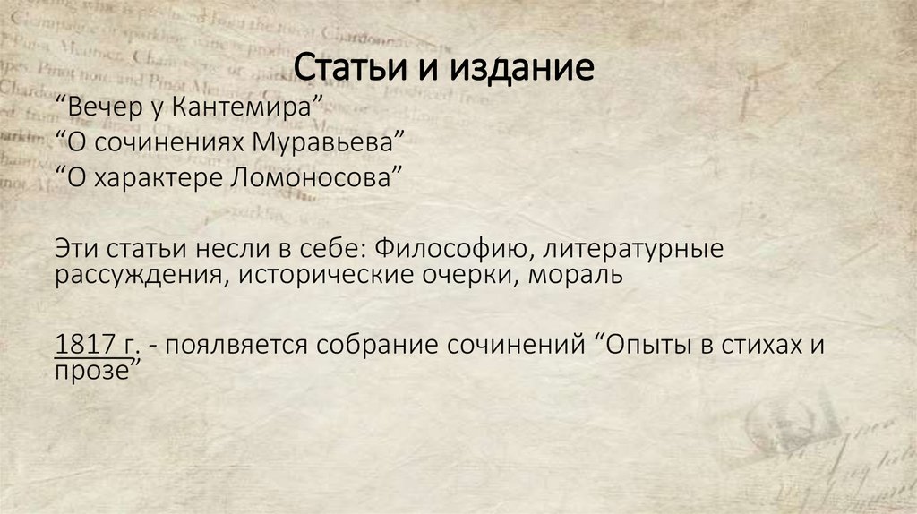 1817 г. - поялвяется собрание сочинений “Опыты в стихах и