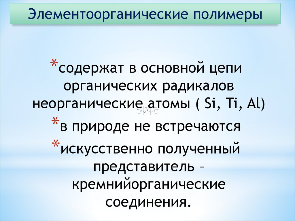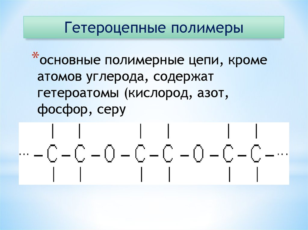 Гетероцепные полимеры*основные полимерные цепи, кроме