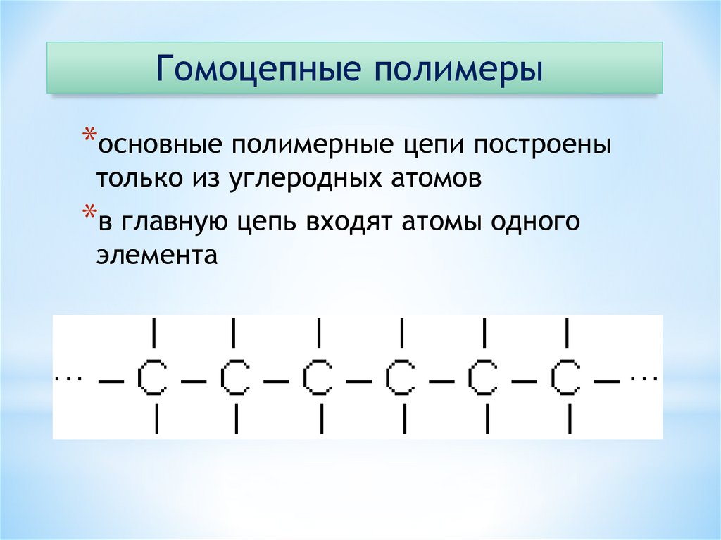 Гомоцепные полимерыв своей основной цепи содержат одинаковые