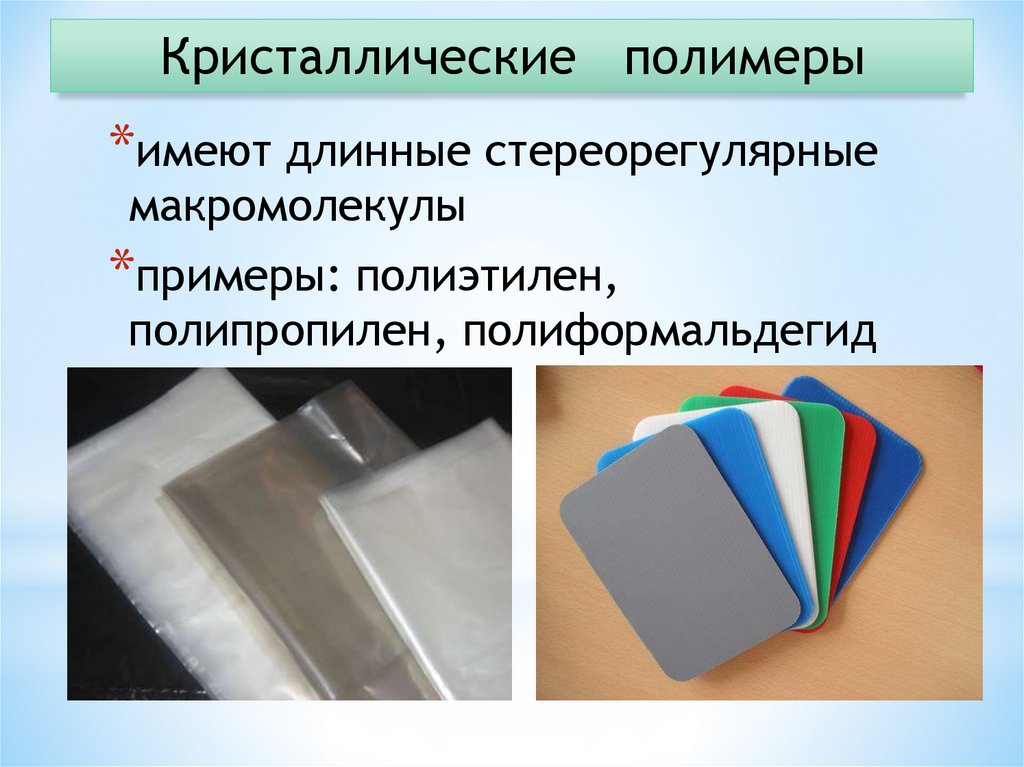 Кристаллические полимеры*имеют длинные стереорегулярные