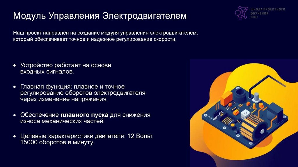 Модуль Управления ЭлектродвигателемНаш проект направлен на создание модуля управления электродвигателем,