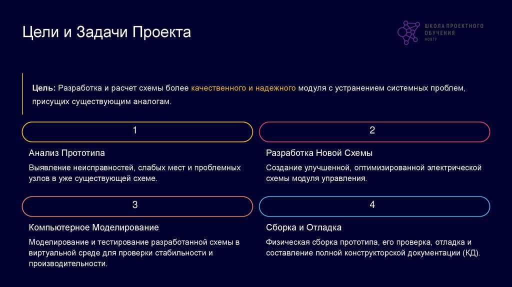 Цели и Задачи ПроектаЦель: Разработка и расчет схемы более качественного и надежного модуля с устранением системных проблем,