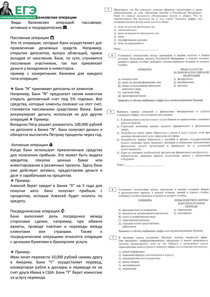 Банковские операцииВиды