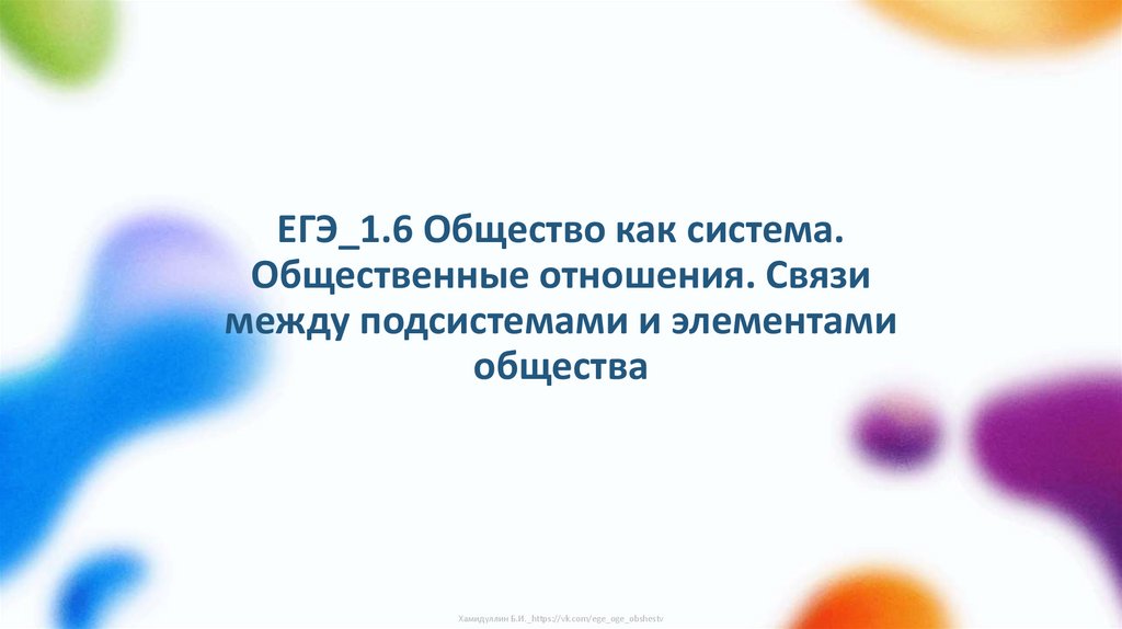1. ЕГЭ_1.6 Общество как система. Общественные отношения. Связи между подсистемами и элементами общества