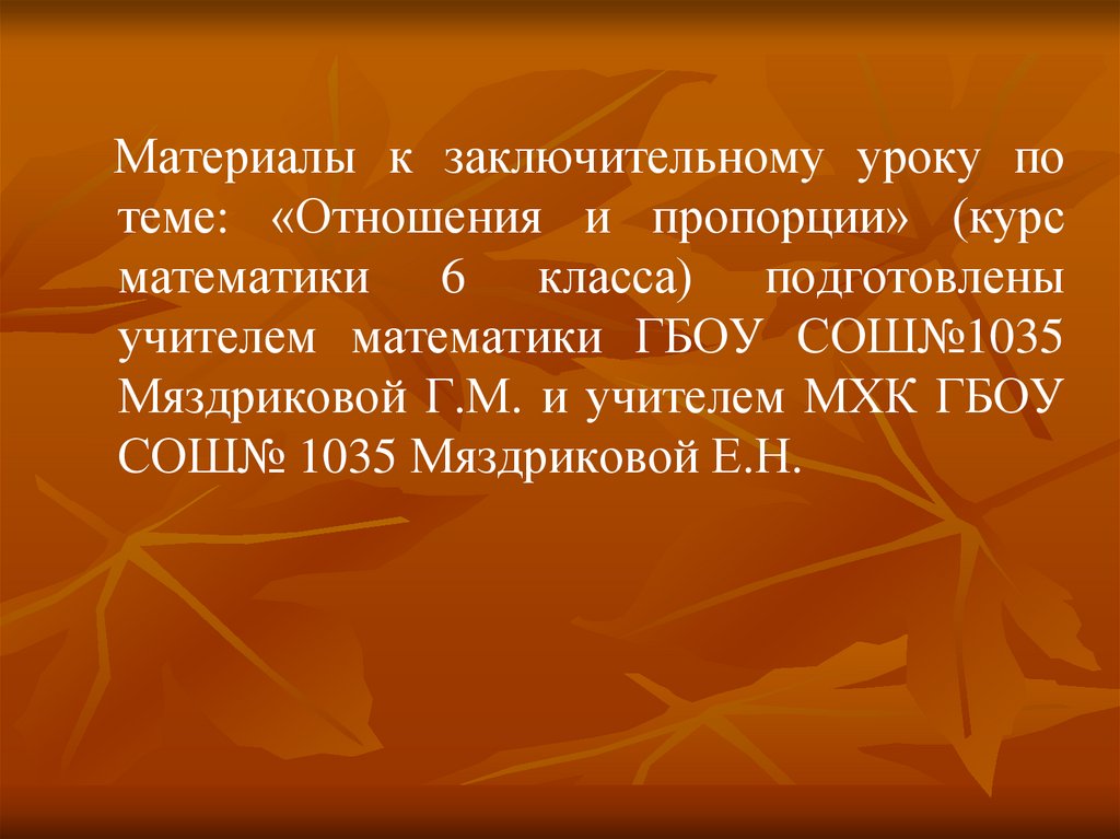 Материалы к заключительному уроку потеме: «Отношения и пропорции» (курс
