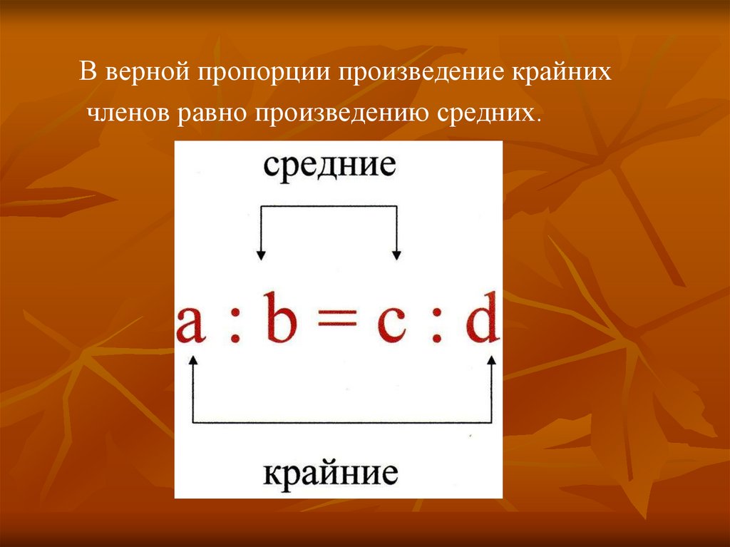 В верной пропорции произведение крайнихчленов равно произведению средних.