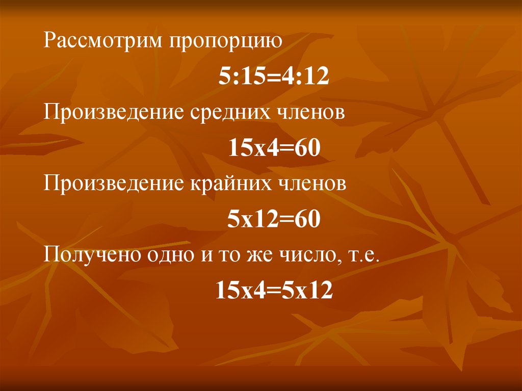 Рассмотрим пропорцию5:15=4:12