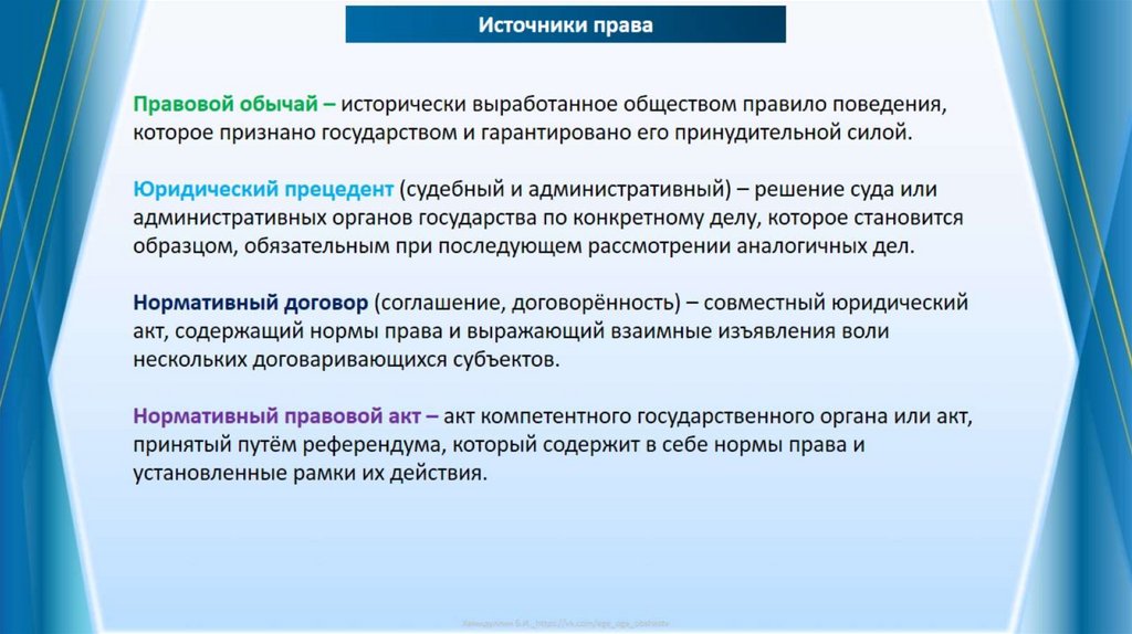ЕГЭ_5.2 Источники права: нормативный правовой акт, нормативный договор, правовой обычай, судебный прецедент. Нормативные