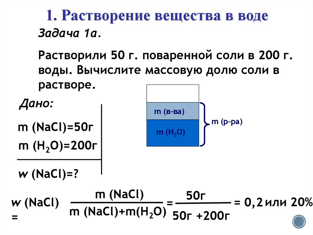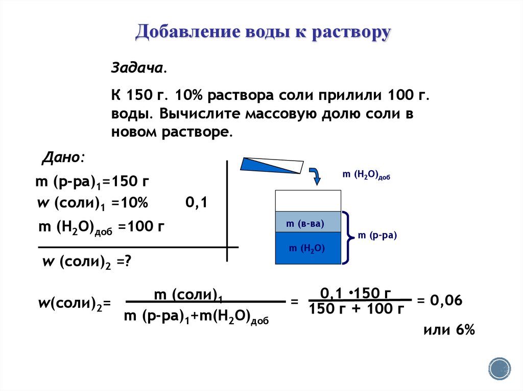 Вычисление массовой доли веществав растворе, полученном при растворении