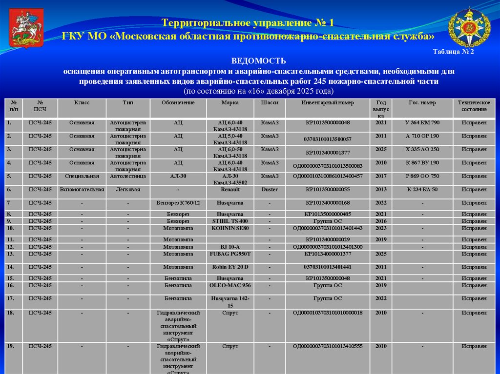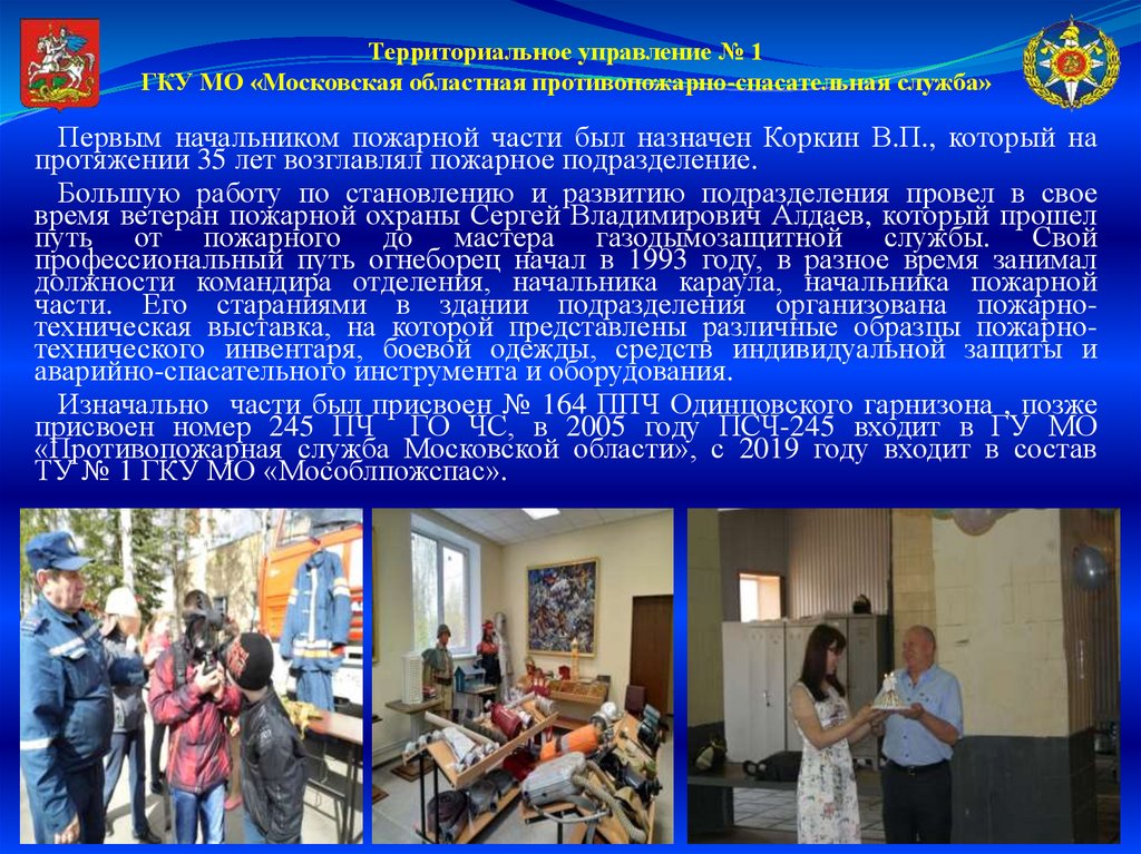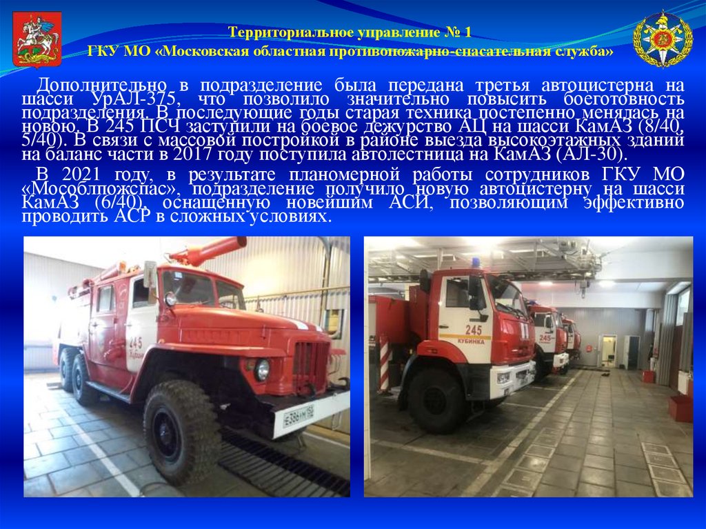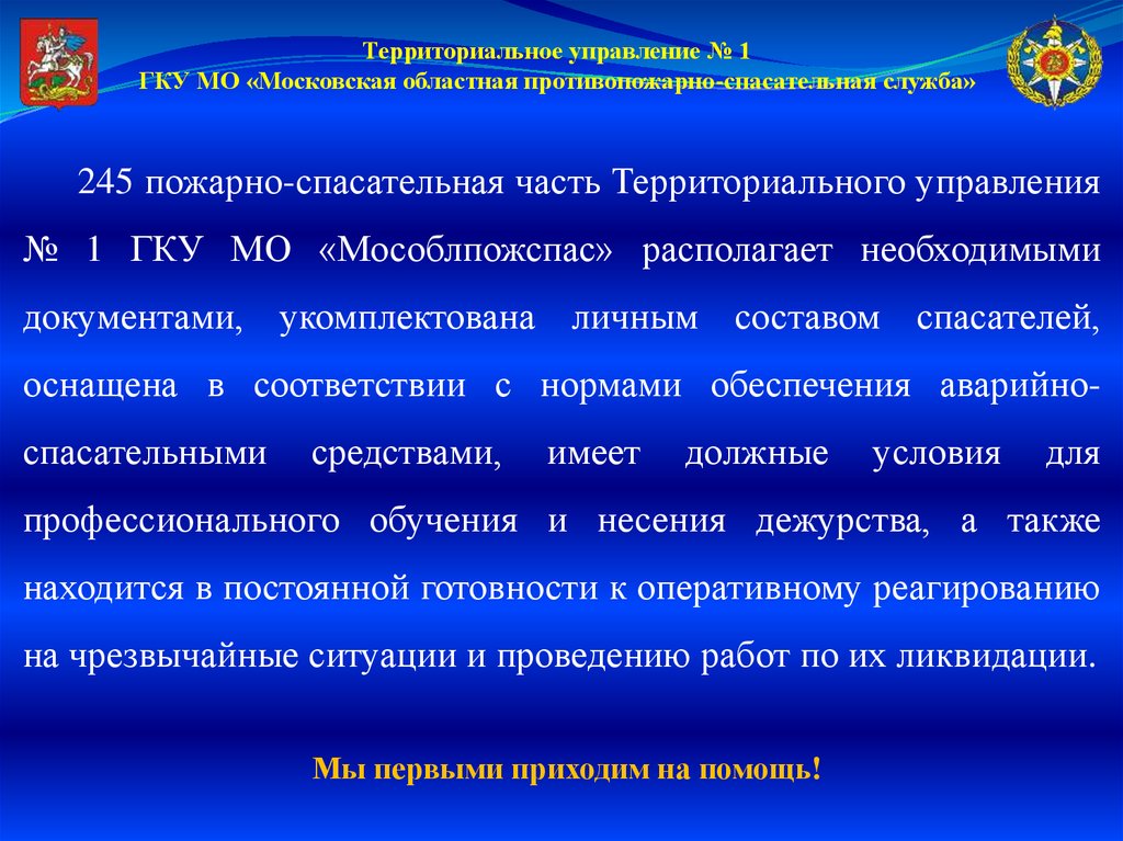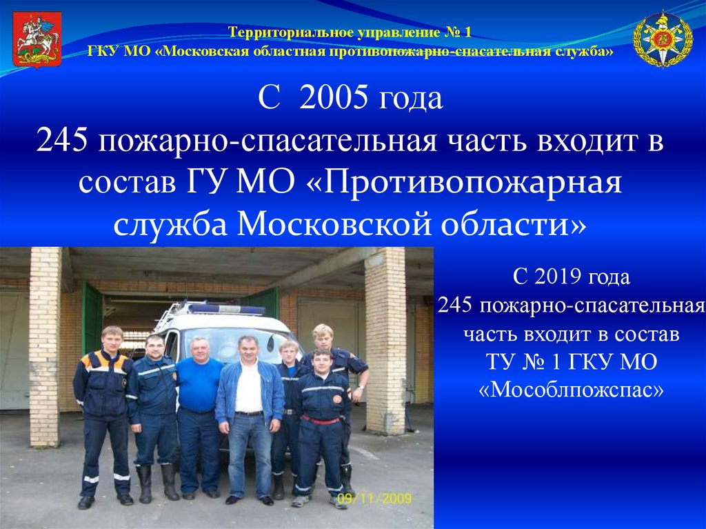 ПОЖАРНО-СПАСАТЕЛЬНАЯ ЧАСТЬ № 245Территориальное управление № 1 ГКУ МО «Мособлпожспас»