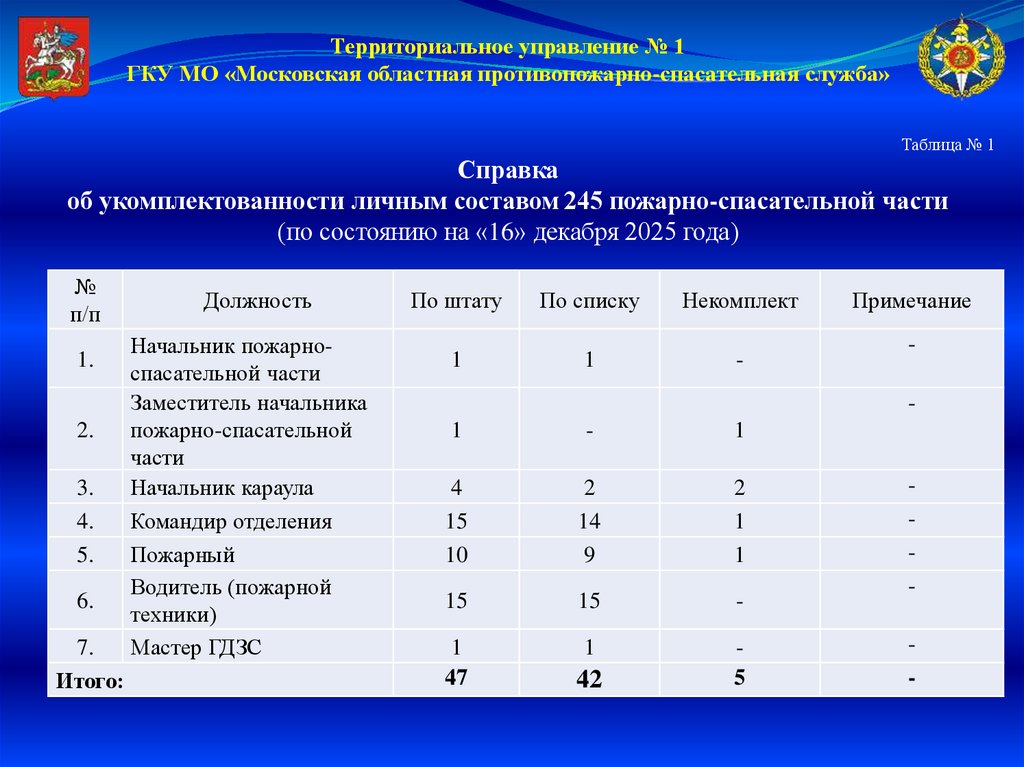 об укомплектованности личным составом 245 пожарно-спасательной части