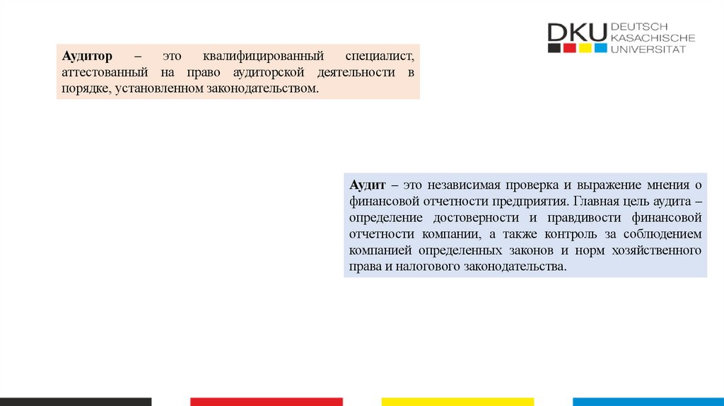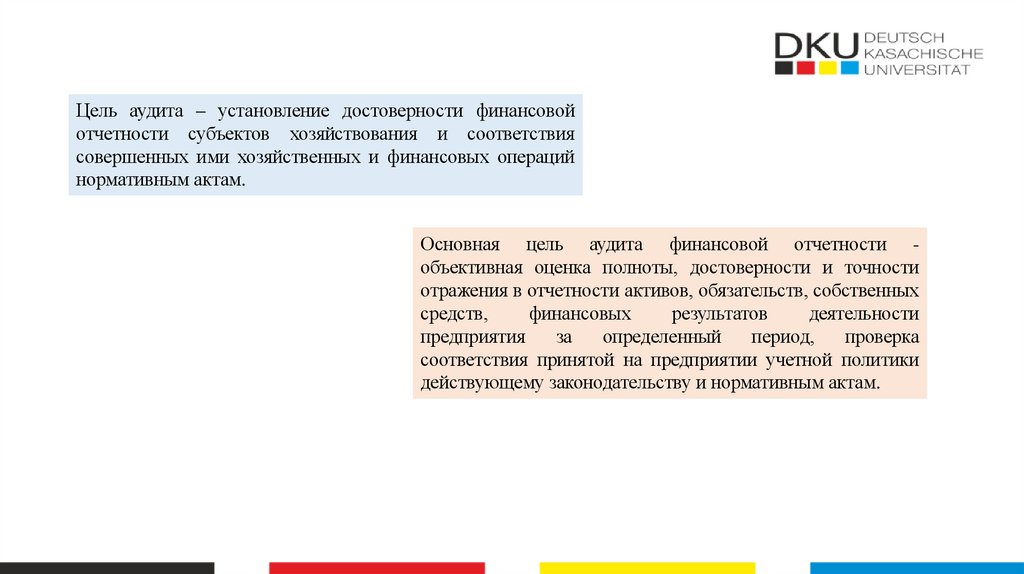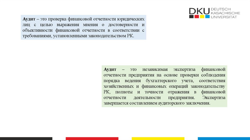 Аудит – это проверка финансовой отчетности юридическихлиц с целью выражения мнения о достоверности и