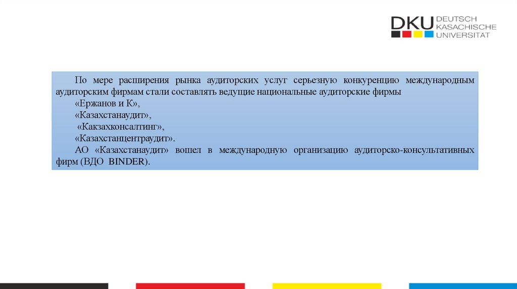 Присутствие на нашем рынке ведущих аудиторских фирм мира играет большую роль в
