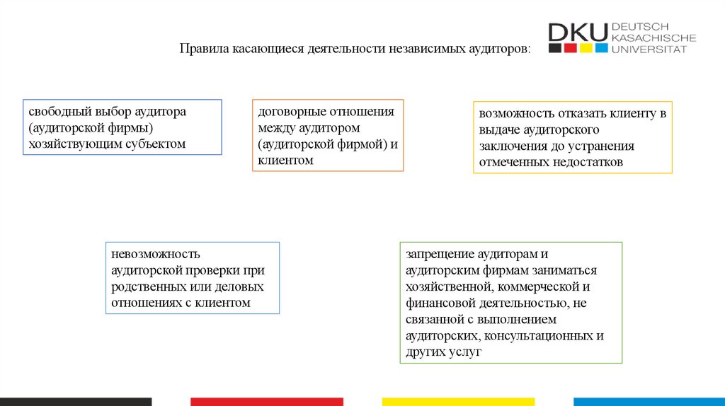 фирмы (согласно статье 6 Закона РК «Об аудиторской деятельности»):
