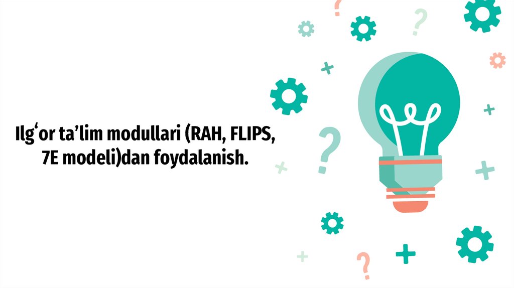 1. Ilgʻor taʼlim modullari (RAH, FLIPS, 7E modeli)dan foydalanish.