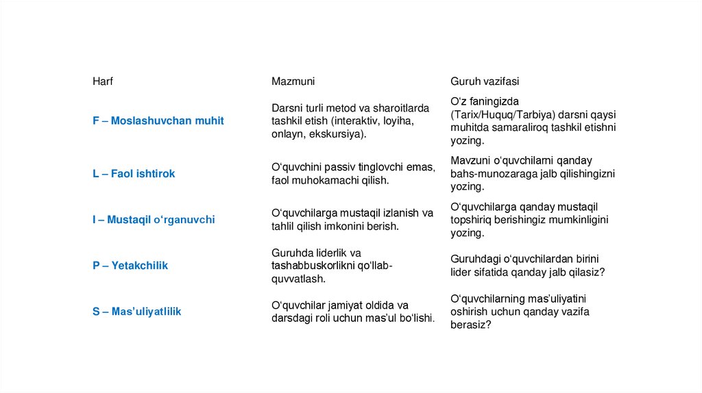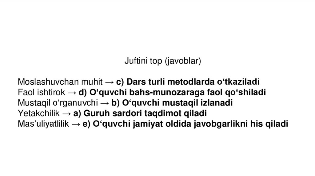 beradi, o‘qituvchi umumlashtiradi.