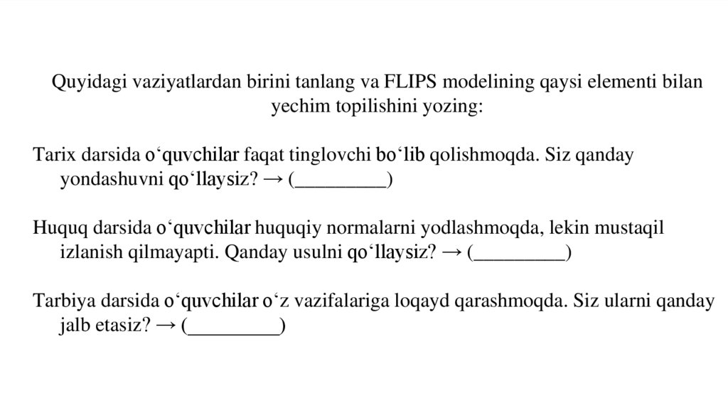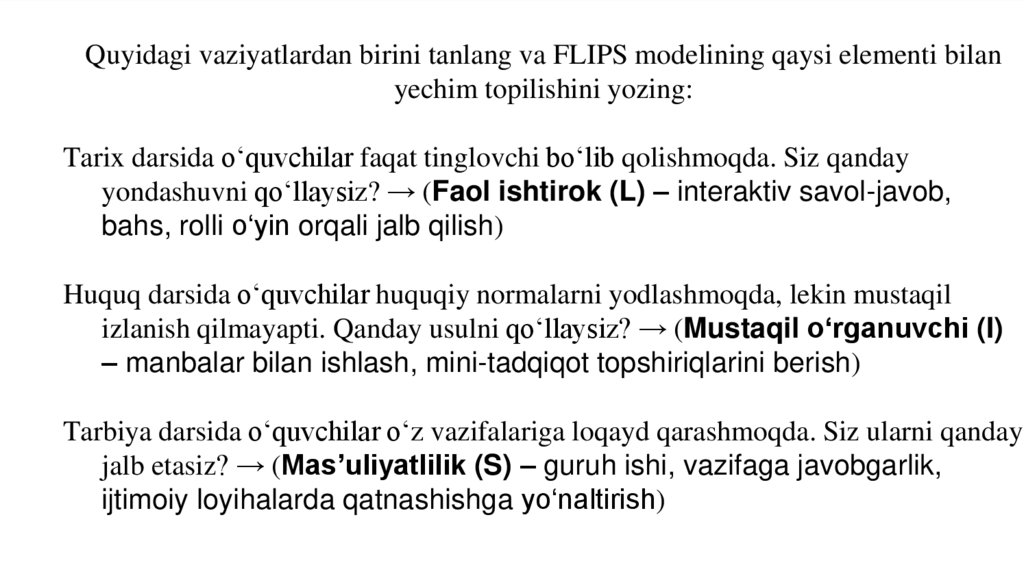 dars uslublarini vaziyatga qarab o‘zgartirish