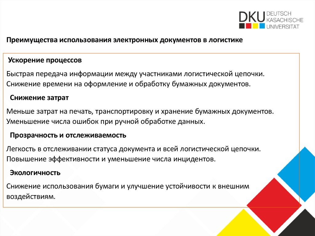 Преимущества использования электронных документов в логистикеУскорение процессов