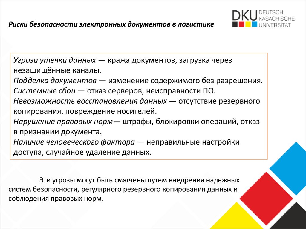 Риски безопасности электронных документов в логистикеУгроза утечки данных — кража документов, загрузка через