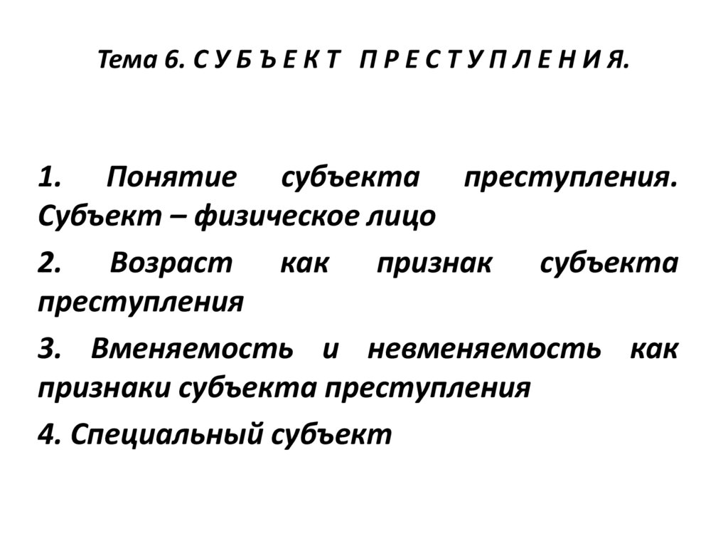 1. Тема 6. С У Б Ъ Е К Т П Р Е С Т У П Л Е Н И Я.