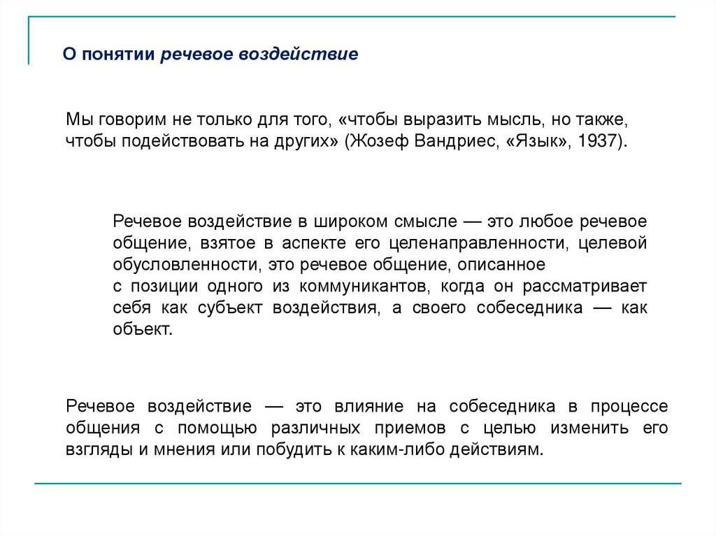 Речевое воздействие в широком смысле — это любое речевое