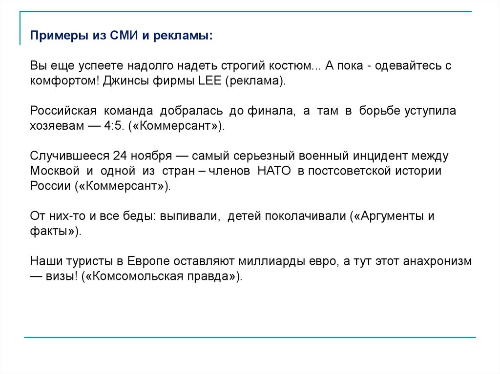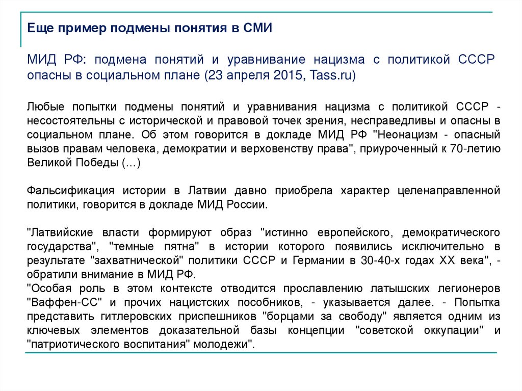 • смешивания истинных фактов со всевозможными предположениями,