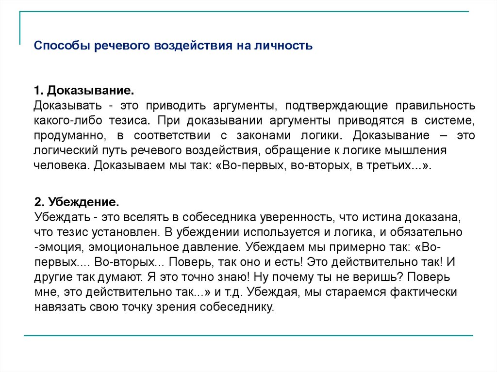 Способы речевого воздействия на личность1. Доказывание.