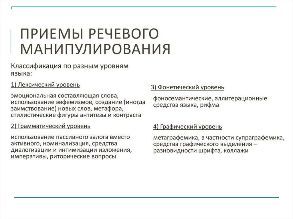 Речевое манипулирование – это отбор и использование таких средств