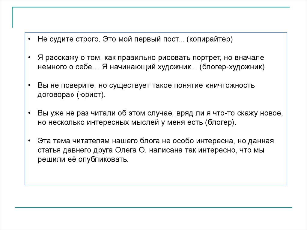 является секретом…», «Здравомыслящие читатели понимают, что…»; «Те,