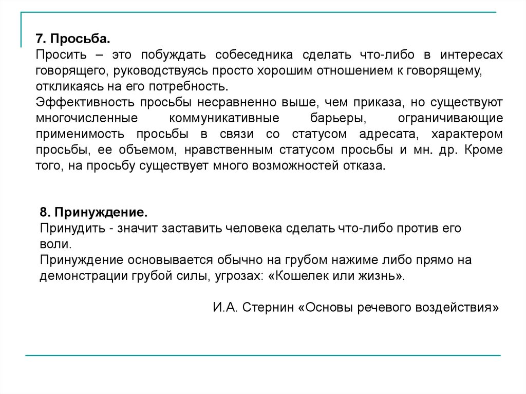 7. Просьба.Просить – это побуждать собеседника сделать что-либо в интересах