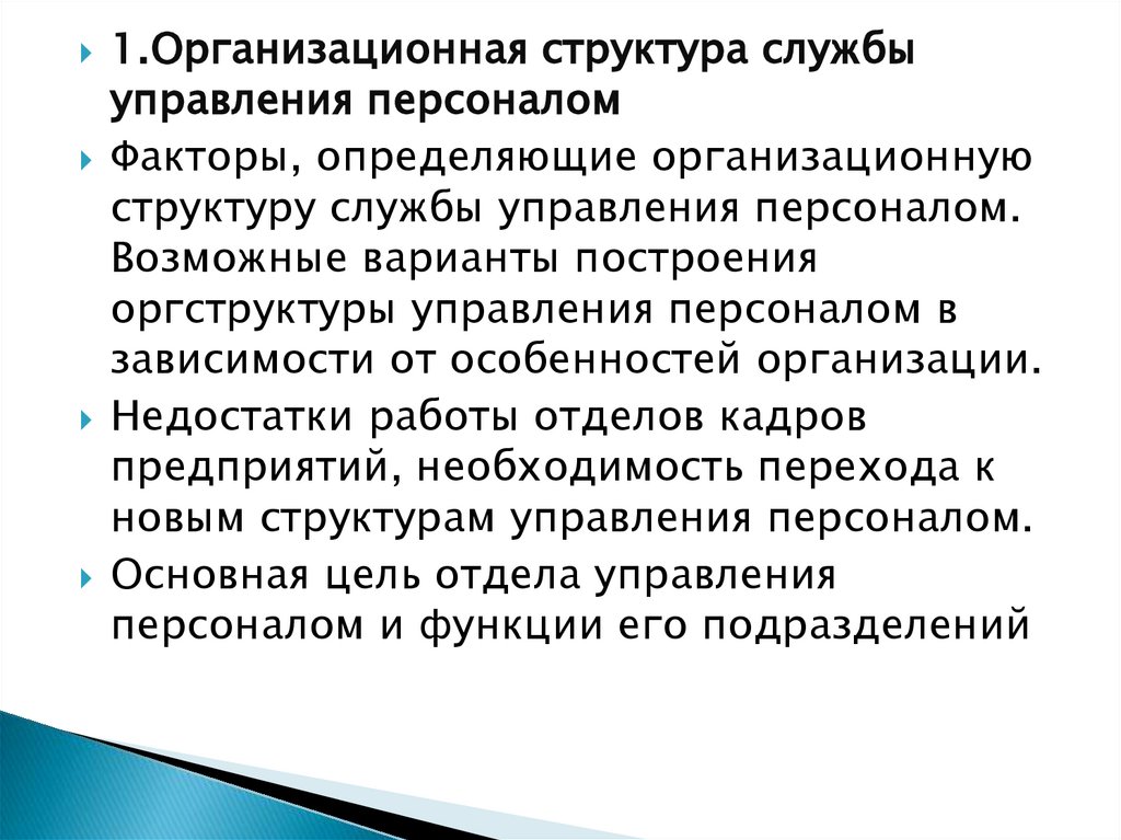 1.Организационная структура службыуправления персоналом
