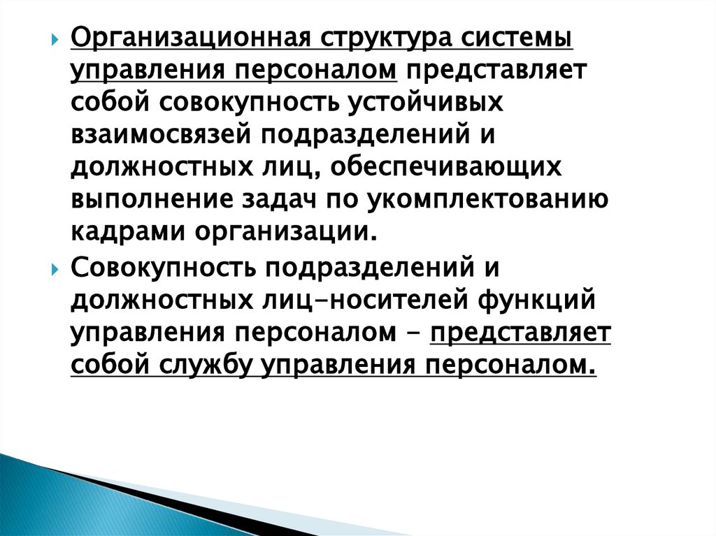 Организационная структура системыуправления персоналом представляет