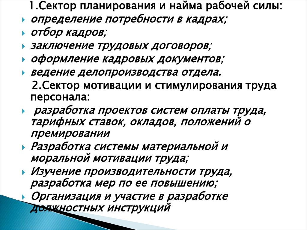 отделе управления персоналом