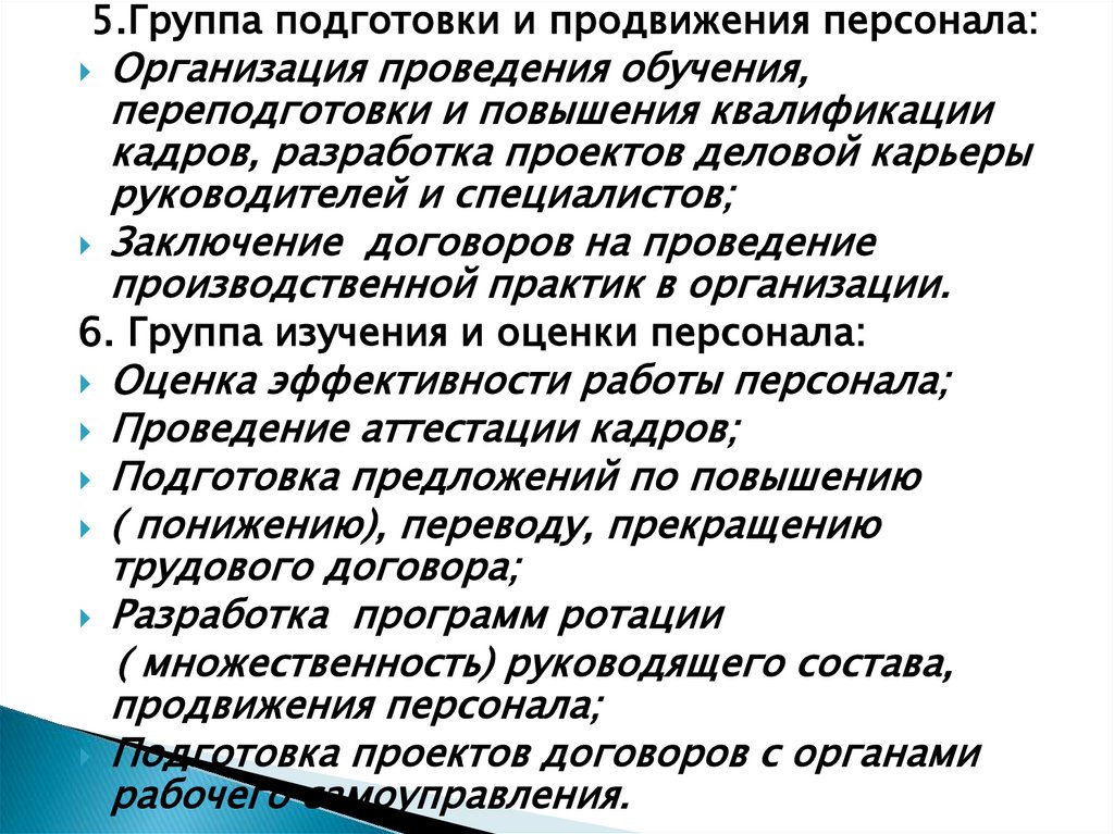 своих функций и от чисто кадровых