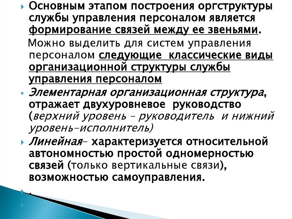 Основным этапом построения оргструктурыслужбы управления персоналом является