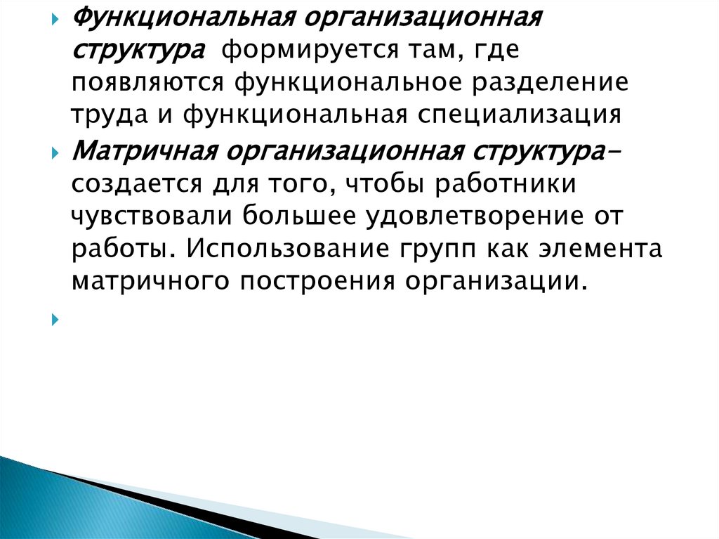 Функциональная организационнаяструктура формируется там, где
