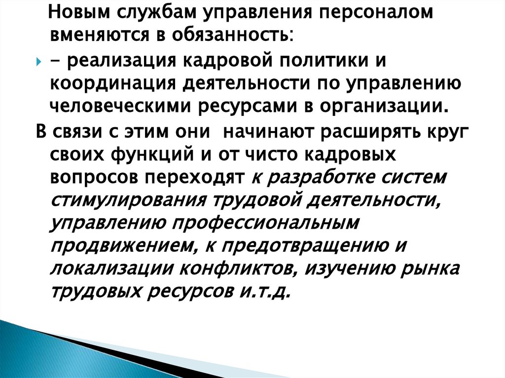 Новым службам управления персоналомвменяются в обязанность: