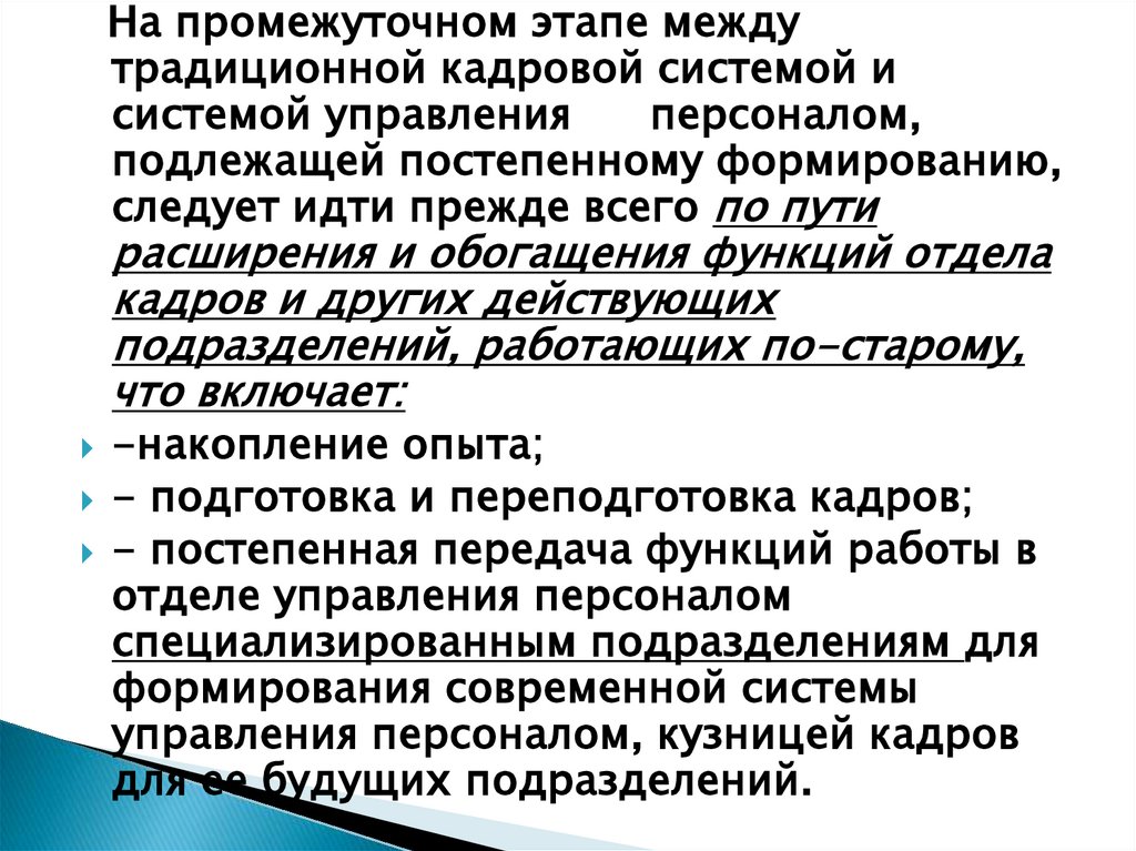 На промежуточном этапе междутрадиционной кадровой системой и