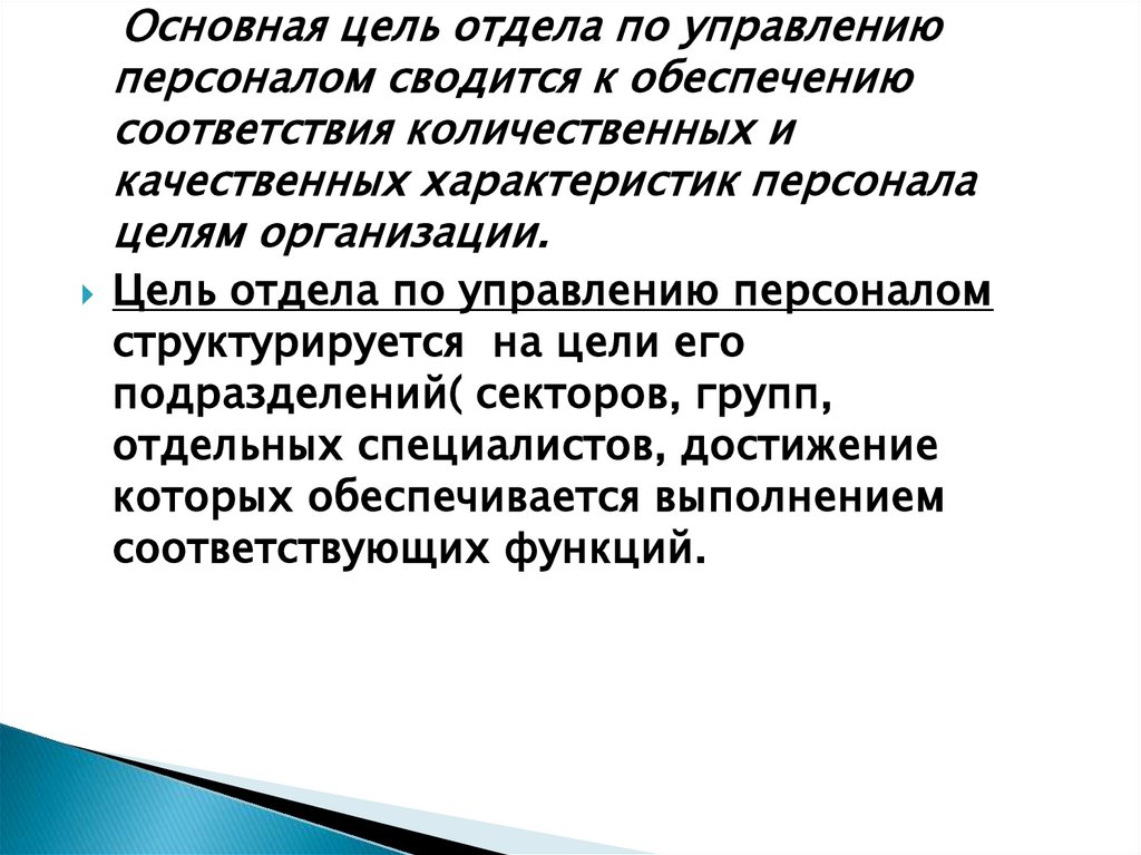 Основная цель отдела по управлениюперсоналом сводится к обеспечению