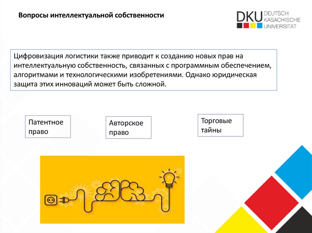Вопросы интеллектуальной собственностиЦифровизация логистики также приводит к созданию новых прав на