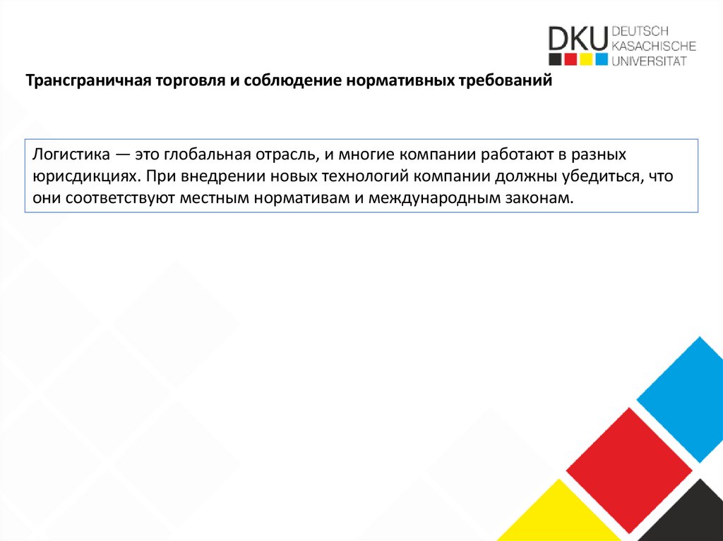 Трансграничная торговля и соблюдение нормативных требованийЛогистика — это глобальная отрасль, и многие компании работают в разных