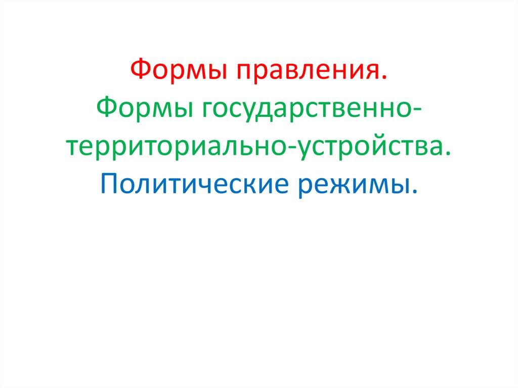 1. Формы правления. Формы государственно-территориально-устройства. Политические режимы.