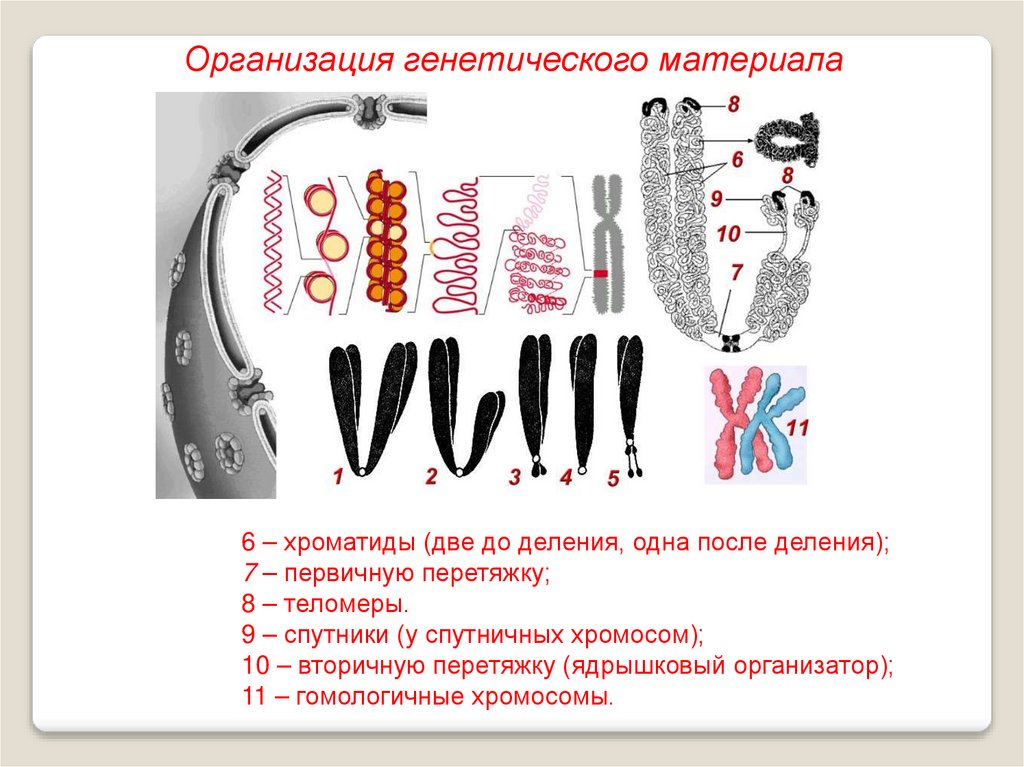 Организация генетического материала6 – хроматиды (две до деления, одна после деления);