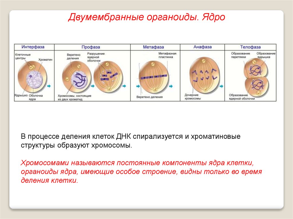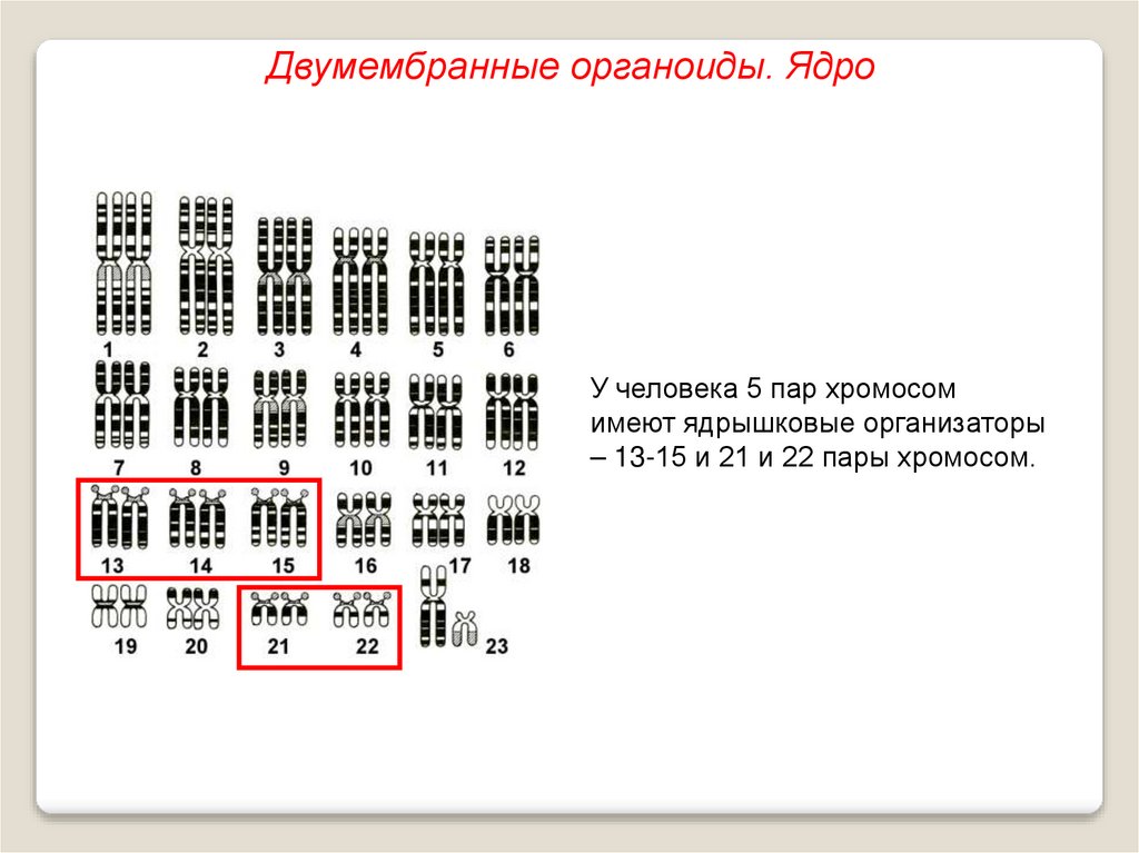 Двумембранные органоиды. ЯдроУ человека 5 пар хромосом