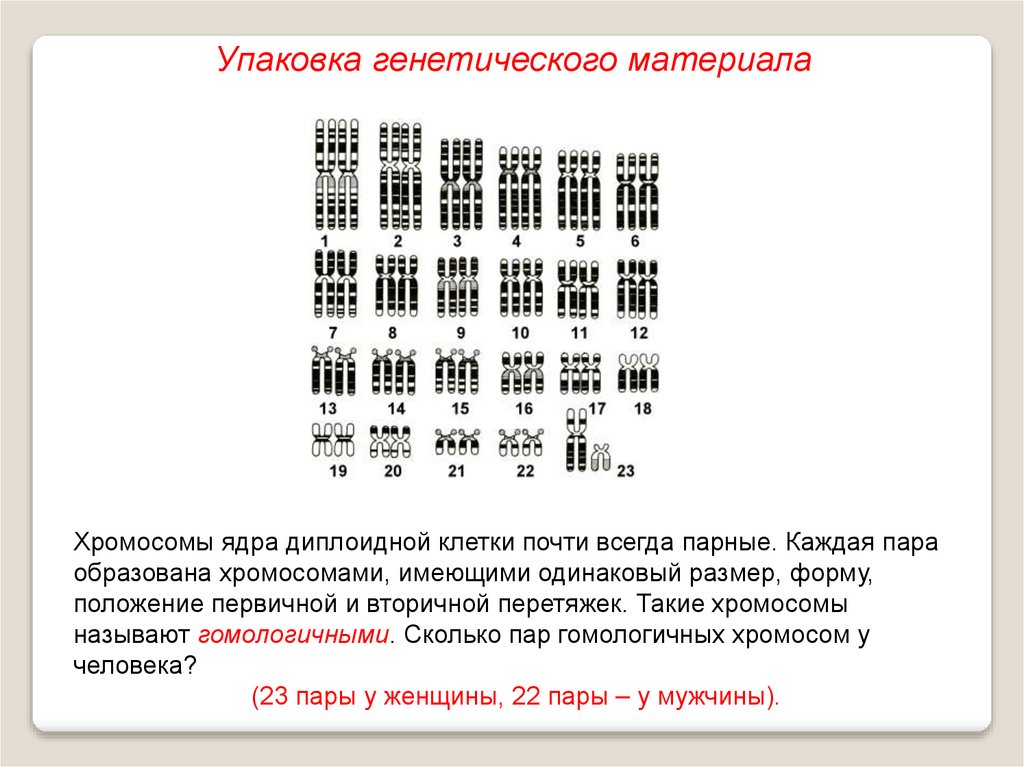 Упаковка генетического материалаХромосомы ядра диплоидной клетки почти всегда парные. Каждая пара